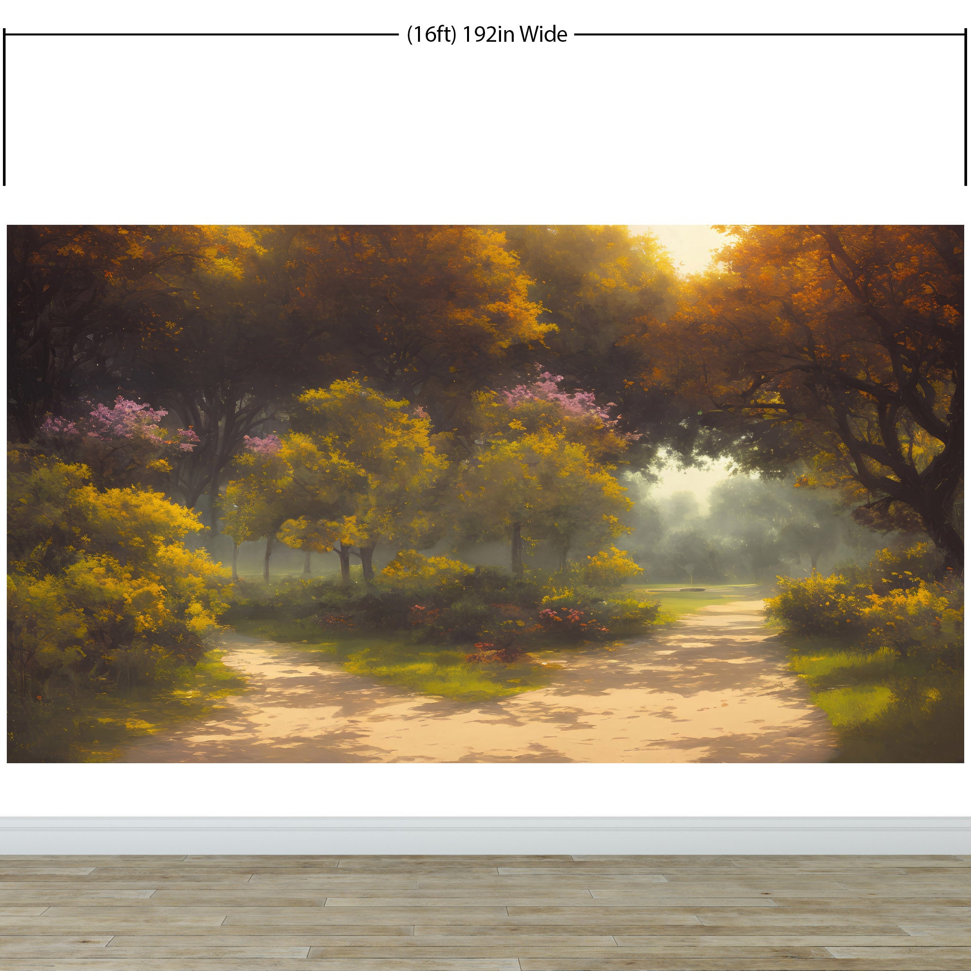Vintage Trees in Park Wallpaper. Peel and Stick Wall Mural. #6496