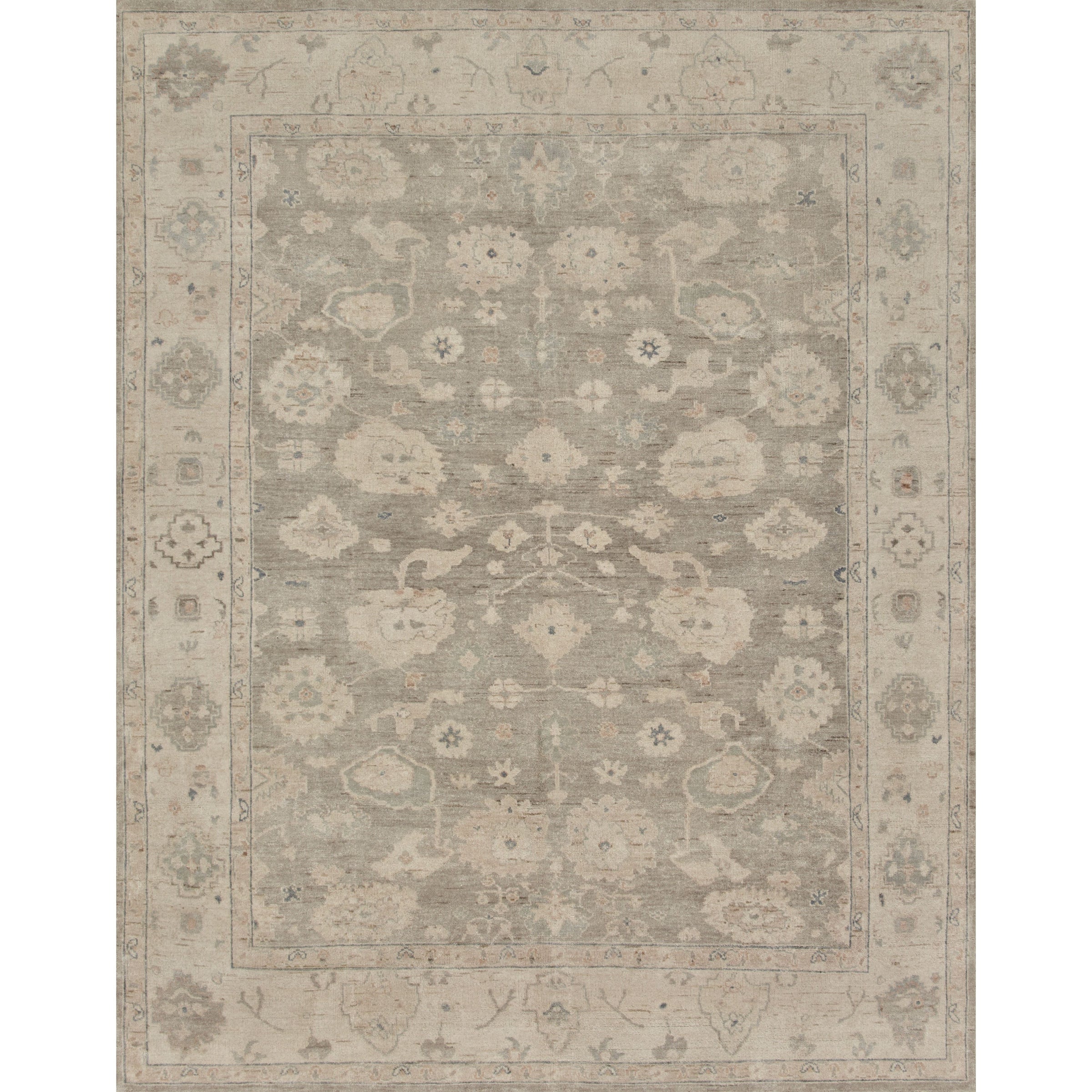 Hand-knotted in India of 100% wool by skilled artisans, the Vivienne Silver / Stone Area Rug offers the look of a well-worn antique rug in a modern-day color palette. Each exquisite piece undergoes a weeks-long antique washing process which fades the pattern and color beautifully. And with sizes ranging from 2 x 3 to 13 x 19, Vincent fits right at home in any elegant room setting.