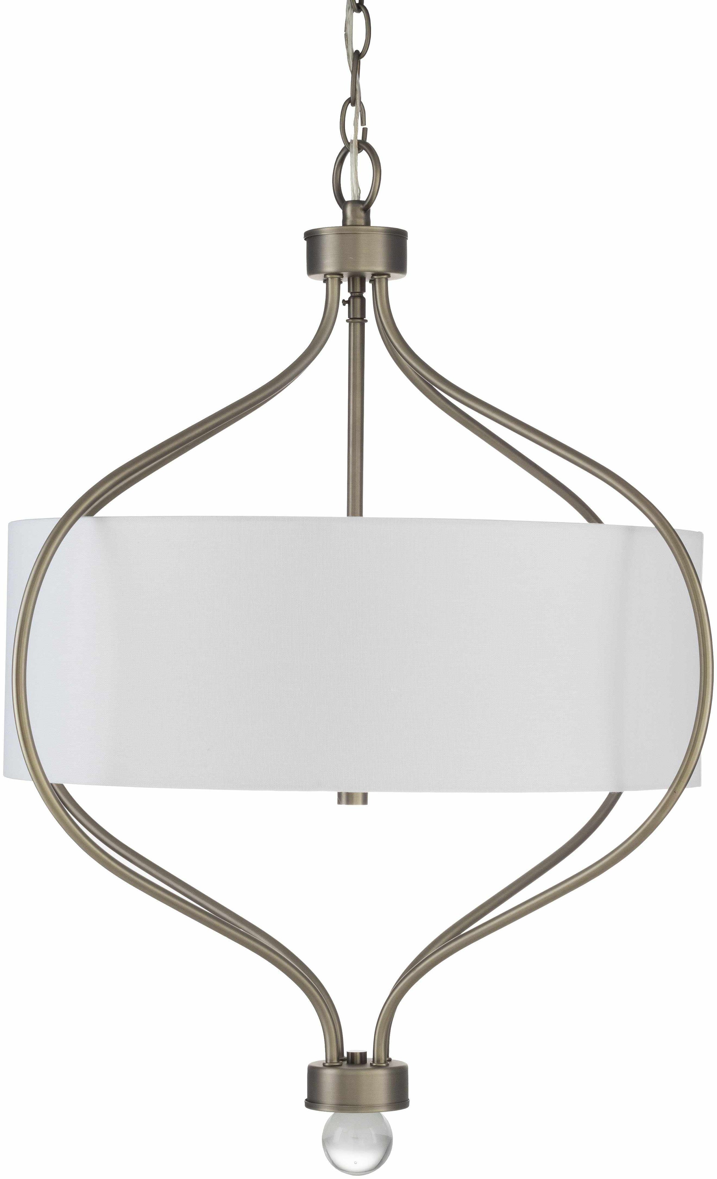 - Fixture: Metallic - Nickel, White; Base: Metallic - Nickel; Shade: White; Cord: Translucent, Nickel Antiqued Natural Finish Fabric, Metal Fixture