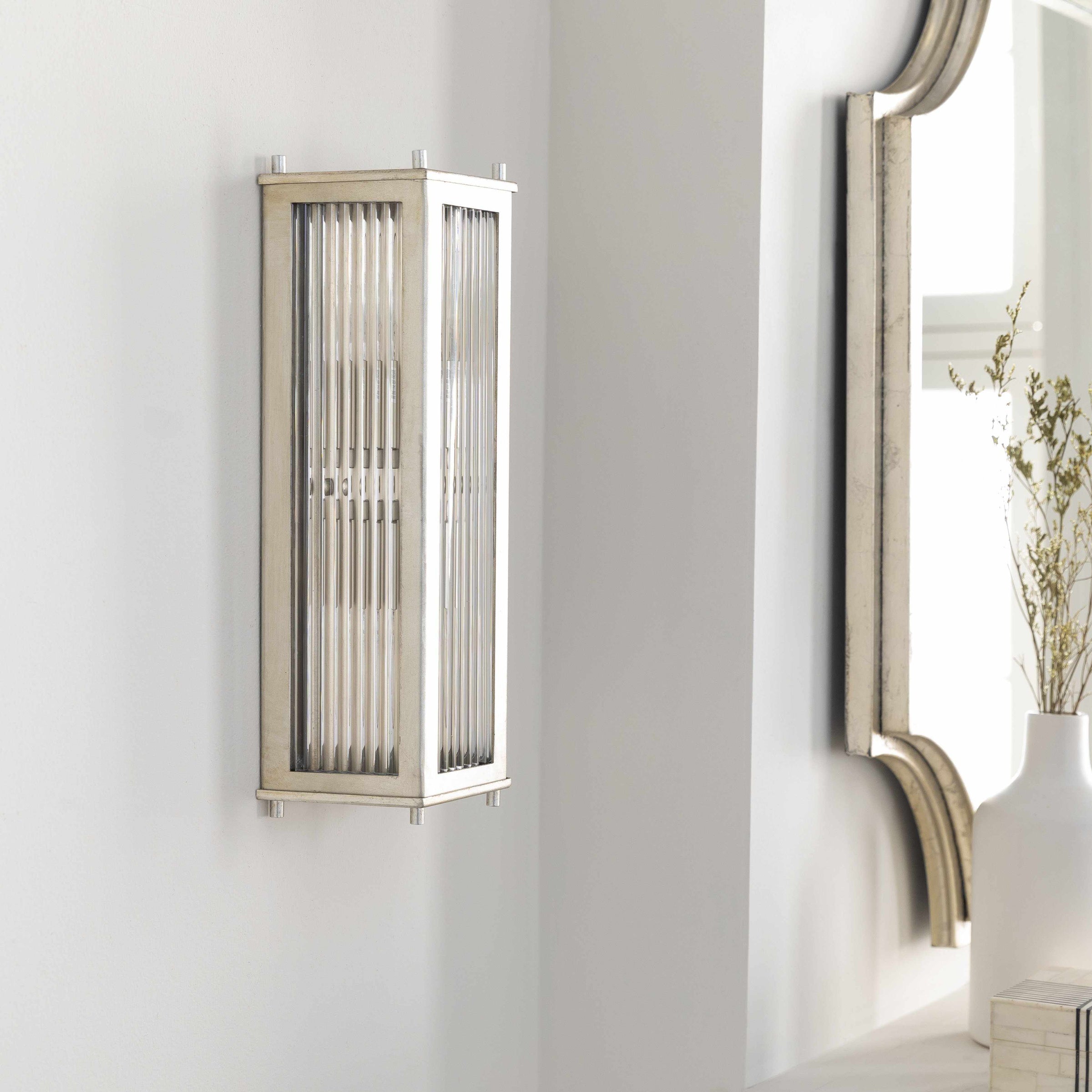 • Clear, Silver Gilded Translucent Glass, Metal Fixture