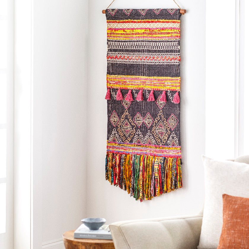 Introducing the Ylivieska Wall Hanging, an eye-catching home decor piece inspired by global style! Crafted from durable cotton and hand-woven in India, this statement wall piece brings a unique touch to your space. It features an intricate design that is sure to draw attention and admiration. Give your walls a stunning upgrade with the Ylivieska Wall Hanging!