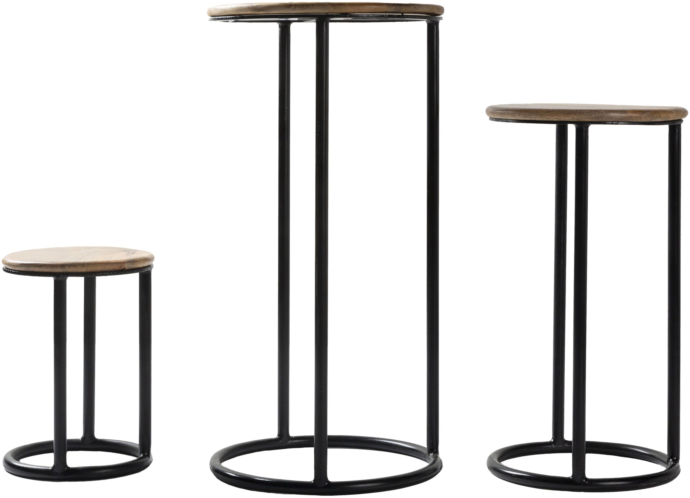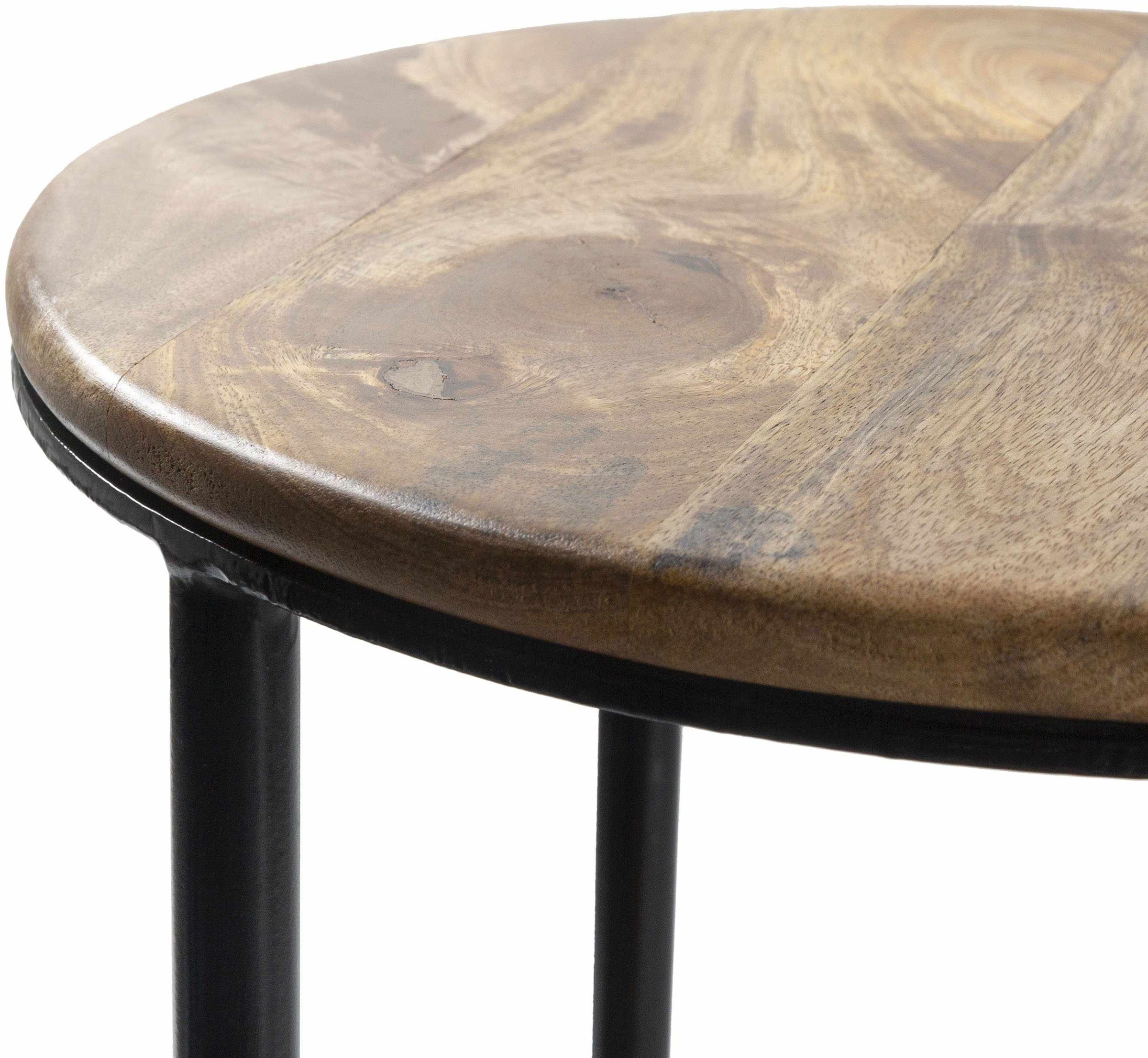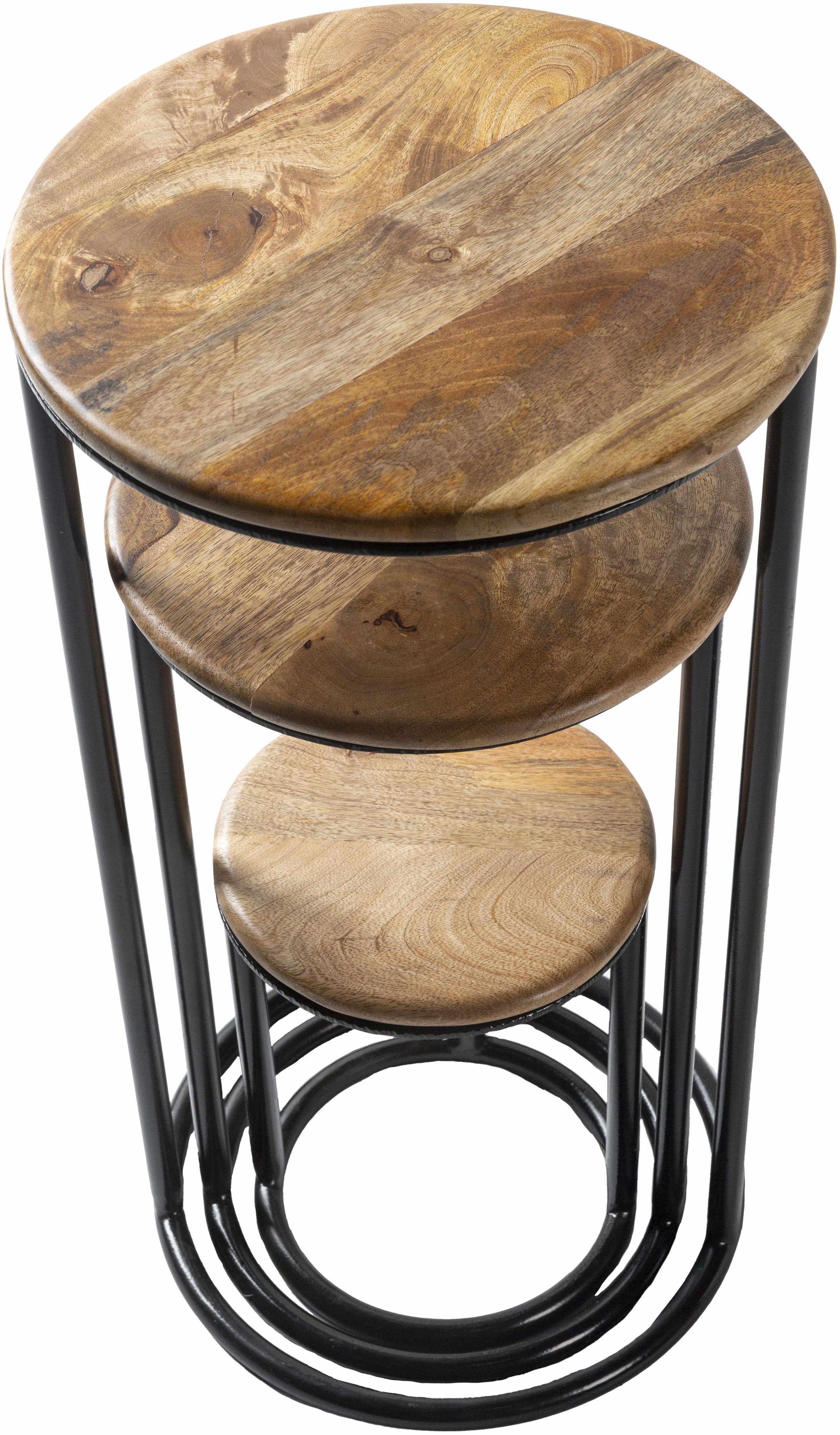Elevate your interior aesthetic with the Zistersdorf Black End Table, a sleek trio that seamlessly blends modern style with industrial edge. Handcrafted in India, this nesting table set features round wooden tops perched atop bold black metal frames, striking a perfect balance between form and function. Whether used together or separately, these tables add a sculptural element to your space while offering convenient surface area for décor, drinks, or everyday essentials.